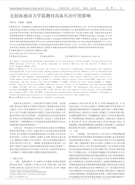 無(wú)創(chuàng)血液動(dòng)力學(xué)監(jiān)測(cè)對(duì)高血壓治療的影響